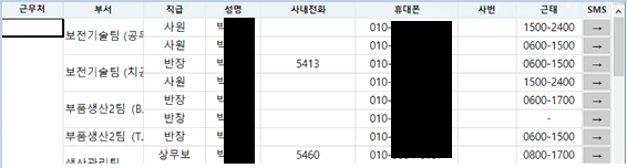 다음과 같은 FarPoint Spread에서 SMS column에 있는 버튼을 클릭했을 때 그 사람에게 SMS를 전송할 수 있게 하는 기능을 추가하려고 했다.