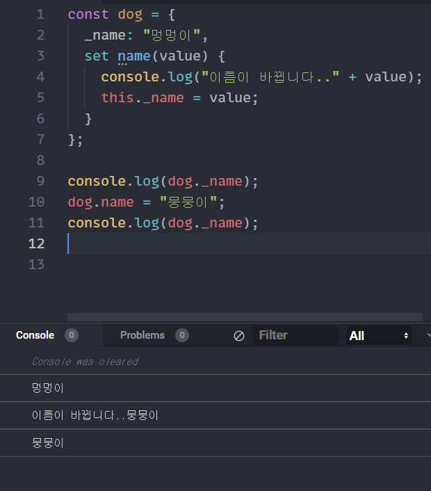 Setter 함수는 set이라는 키워드를 붙여 함수를 선언한다.