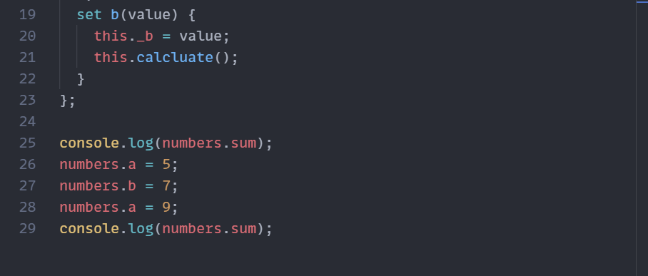 Getter 함수와 Setter 함수가 같이 있는 코드와 위의 코드의 차이는 함수가 있는 코드는 값이 바뀔 때 합을 구하는데,